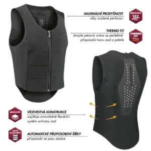 - Bezpečnostní vesta s certifikací EN 13158 Level 3. Maximální ochrana, pohodlí a volnost pohybu v sedle.
