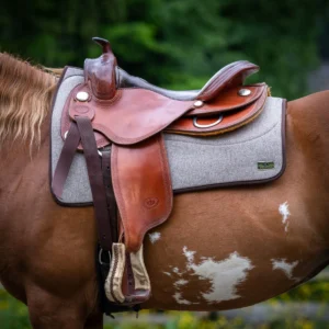 - Westernová deka pod sedlo vyrobená z filce s výkrojeným kohoutkem pro poskytnutí maximálního prostoru.