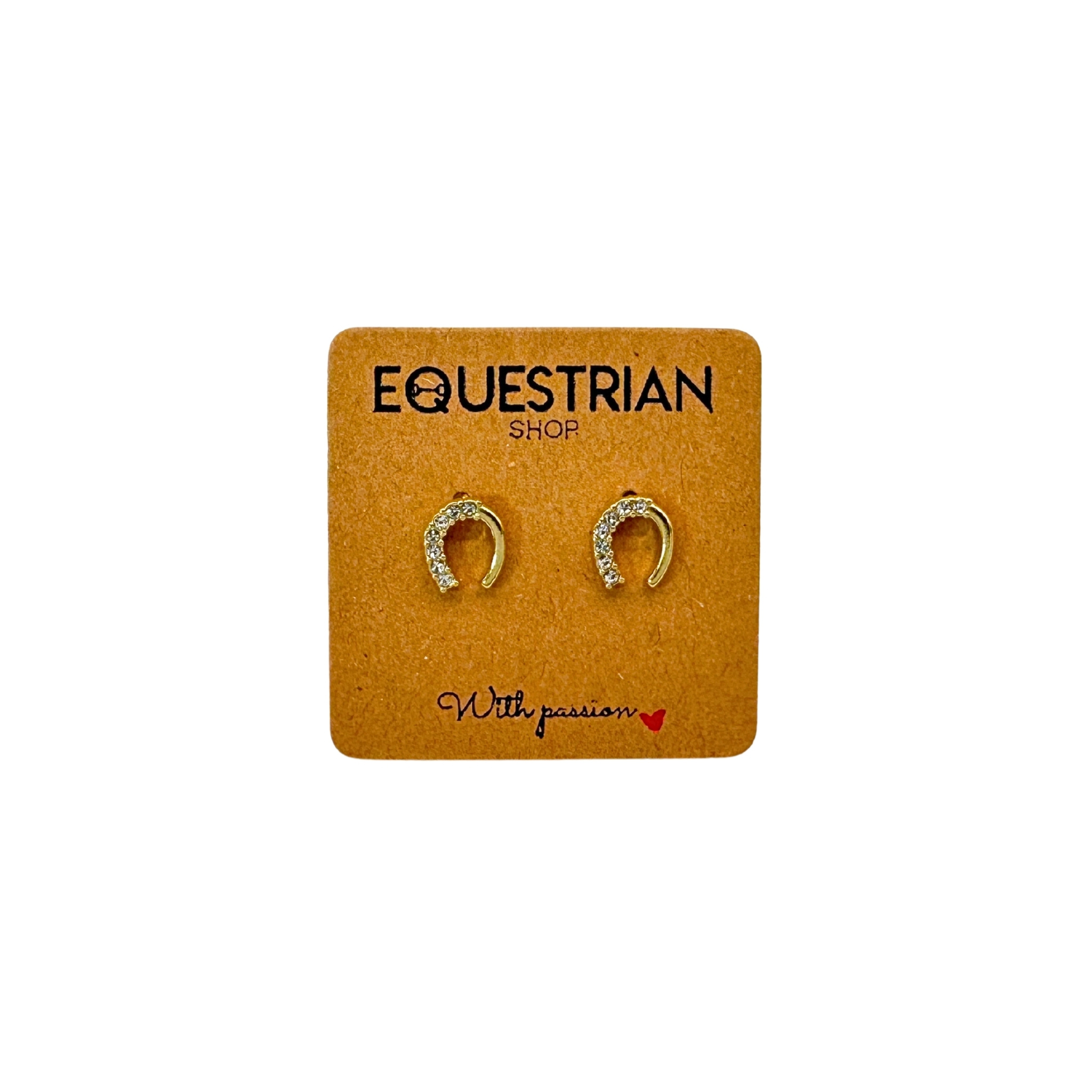 Elegantní náušnice Emy ve tvaru podkovičky s kamínky, jemné, pozlacené, nebo z nerezové oceli, ideální dárek pro milovníky jezdectví.