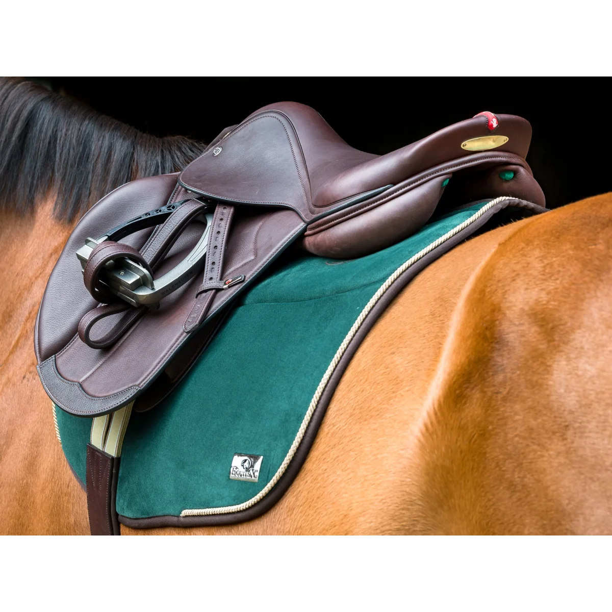 Také spodní strana dečky je sametová. Samet zabraňuje lámání srsti, je pro koně mimořádně pohodlný a snadno se čistí.